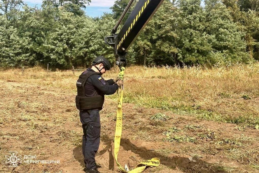 During the day, sappers from the Main Directorate of the State Emergency Service of Ukraine in the Chernihiv region were involved in 9 operations across the Kulikovka, Kyinka, Kyselivka, and Semenivka territorial communities of the Chernihiv and Novhorod-Siversky districts. After conducting the necessary search operations, they discovered 5 dangerous munitions. The heavy-type Pyrotechnic Vehicle manufactured by Validus Special Auto helped extract and neutralize them.