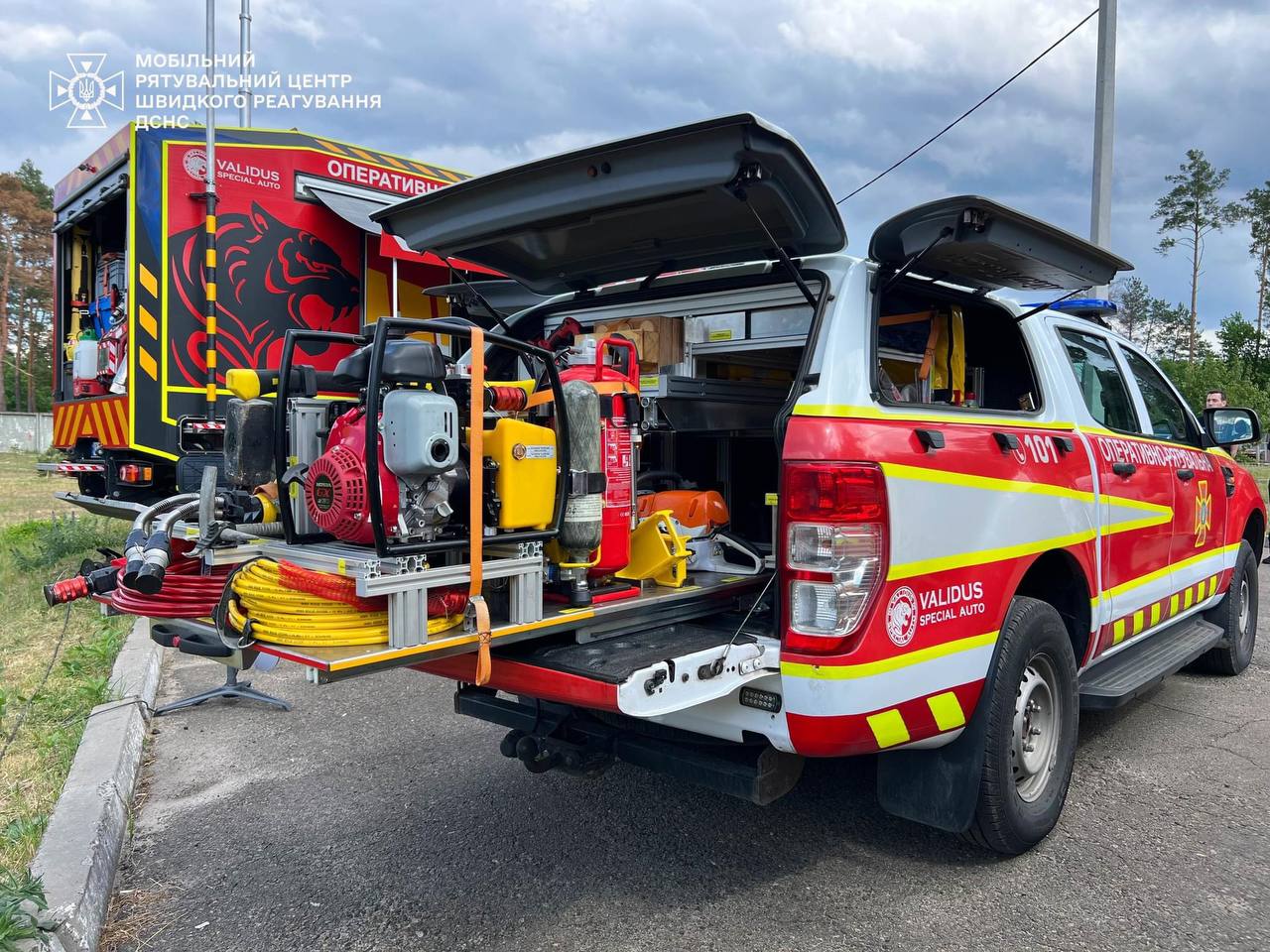 Rescuers demonstrated modern equipment and special vehicles produced by Validus Special Auto, which are used for eliminating the consequences of enemy attacks and evacuating the population from dangerous areas.