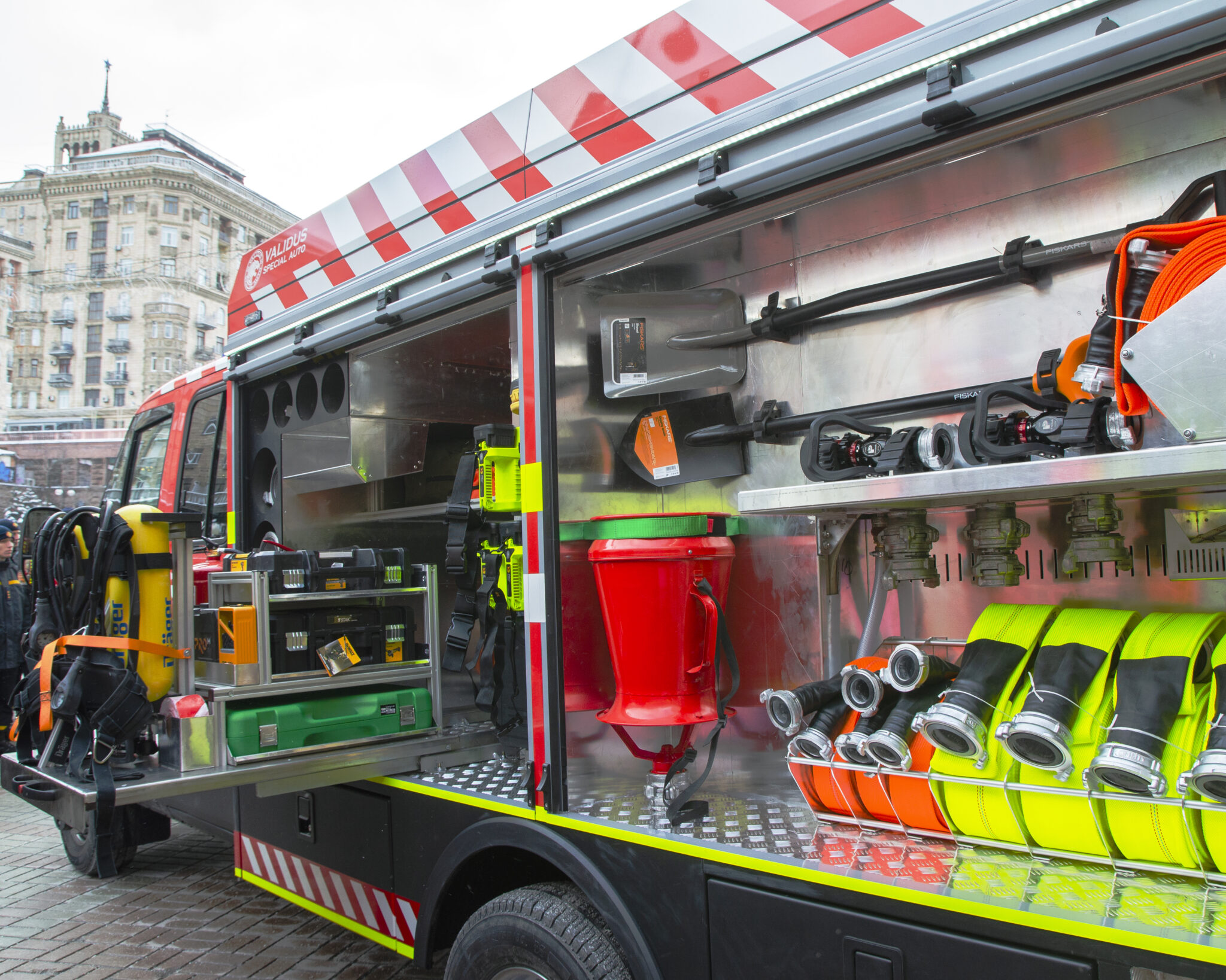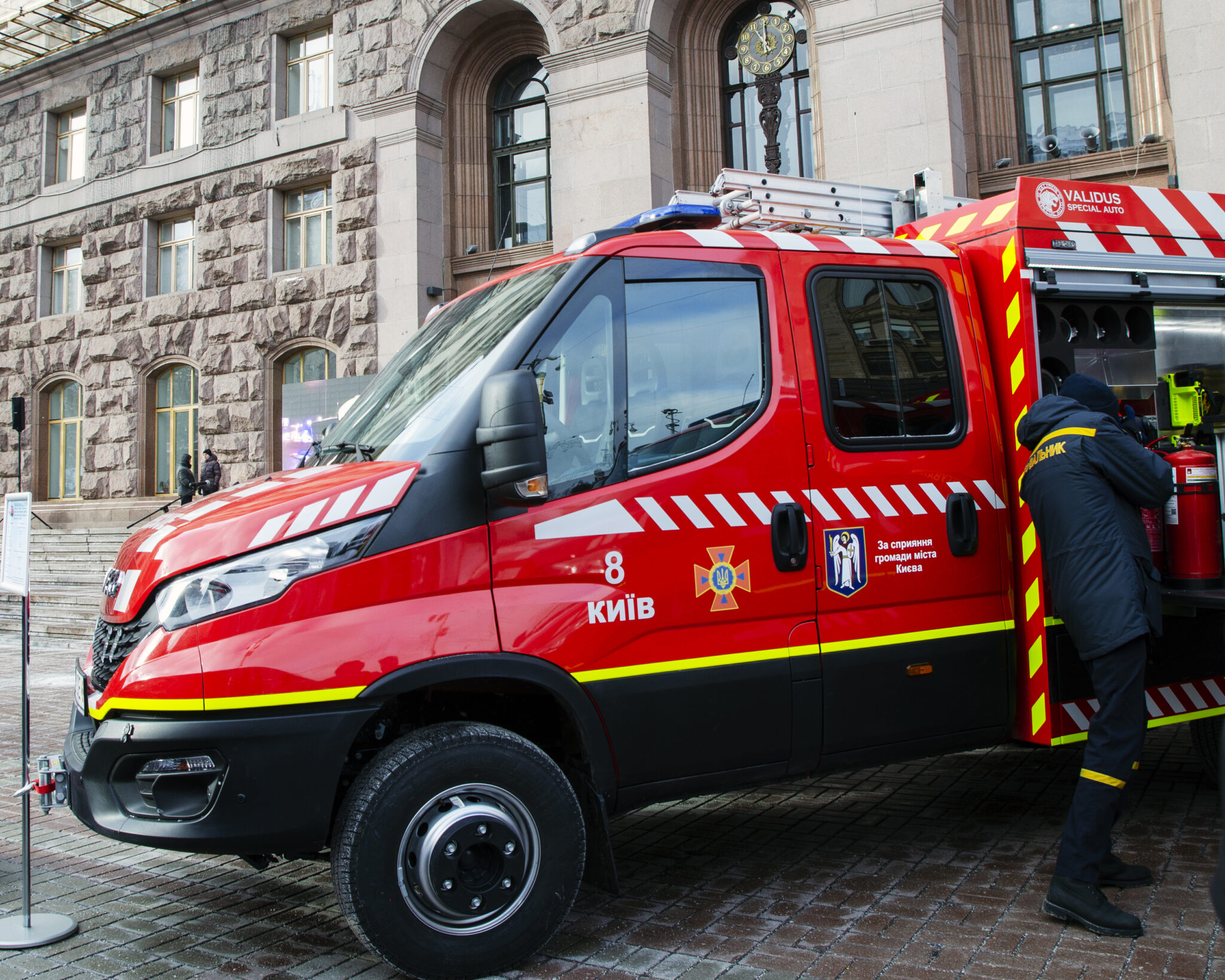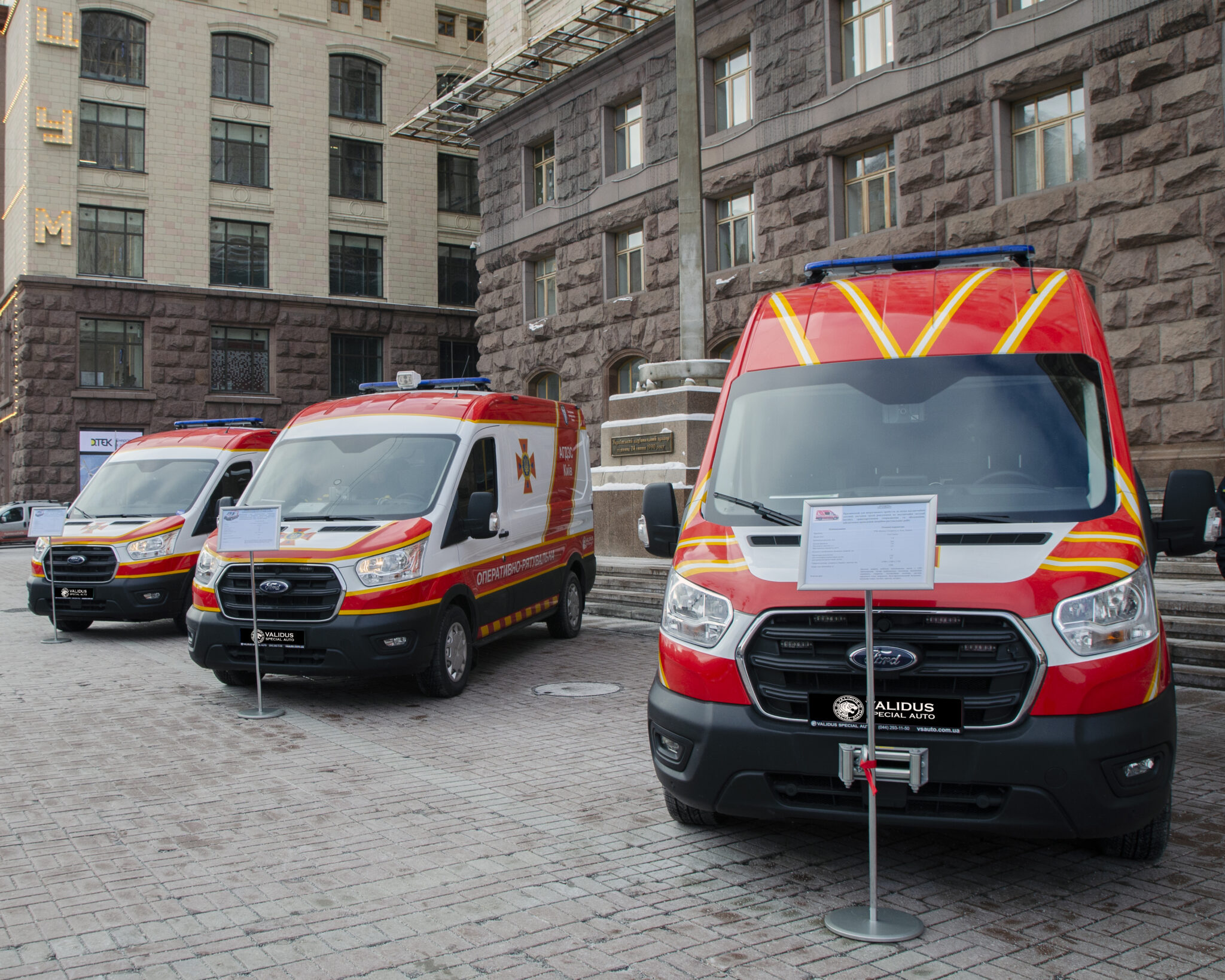On January 12, the Kyiv City State Administration presented the capital’s rescuers with the latest fire and rescue vehicles manufactured by Validus Special Auto. These are 2 vehicles of the gas and smoke protection service based on Ford Transit, 3 firefighting trucks based on Iveco Daily 4×4, and 1 Specialized fire control vehicle based on Ford Transit. This equipment was purchased as part of a targeted program to re-equip Kyiv’s rescue services.