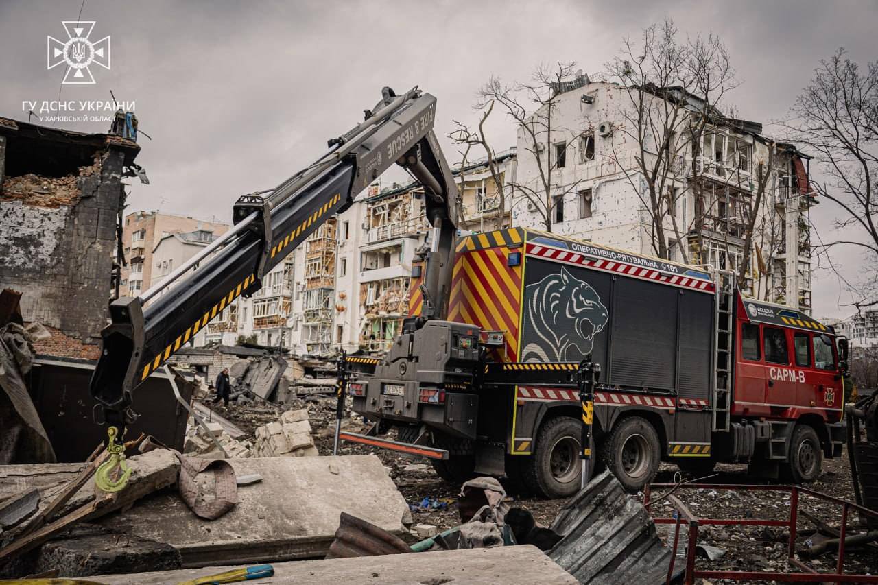 We inform about the work of our special equipment during the elimination of the consequences of Russian shelling. Yesterday, January 2, not only the capital but also the city of Kharkiv were subjected to a massive missile attack. The aftermath included numerous destructions, injuries to 52 people, and the death of one person. After extinguishing fires and providing assistance to the victims, rescuers began to clear the debris of buildings damaged by explosions in a residential area’s courtyard. To accomplish this task, the Main Department of the State Emergency Service of Ukraine in the Kharkiv region involved the Special Heavy-Type Emergency Rescue Vehicle SARMS-V produced by Validus Special Auto. SARMS-V is equipped with unique equipment that can lift and move heavy, large-sized objects. A noticeable advantage of this vehicle is that it performs emergency rescue operations even in hard-to-reach areas.