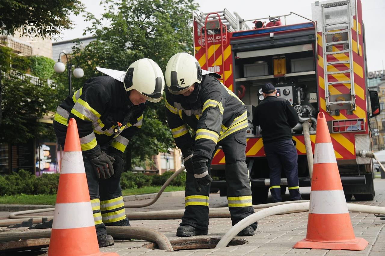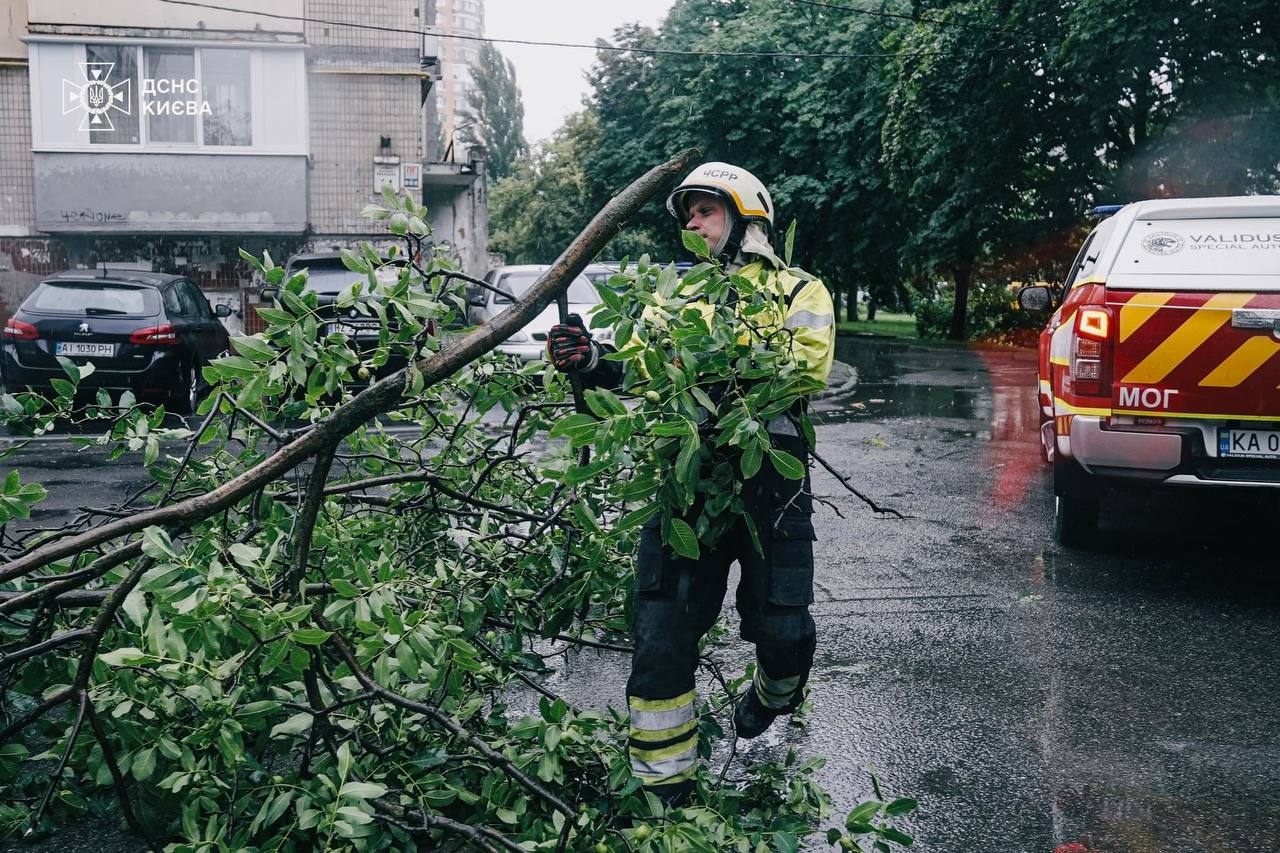 In the Pechersky, Shevchenkivsky, Sviatoshynsky, Obolonsky, and Dnipro districts, rescuers removed fallen trees from sidewalks and roads, and carried out water pumping from flooded areas.