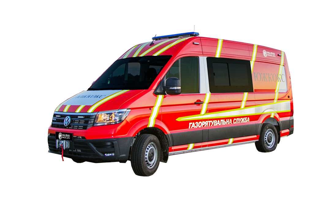 A specialized rescue vehicle based on the Volkswagen Crafter 4×4 for the YUZHKOKS enterprise.