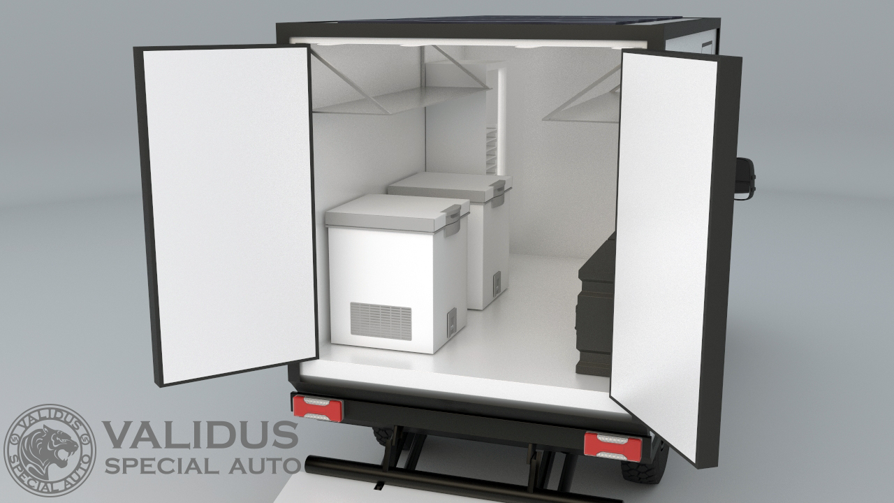 This vehicle uses special refrigeration units of increased capacity, which maintain the desired temperature in different ranges, depending on the requirements of the vaccine manufacturer.