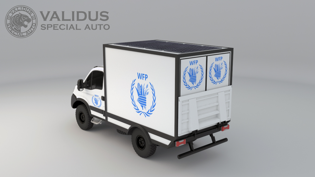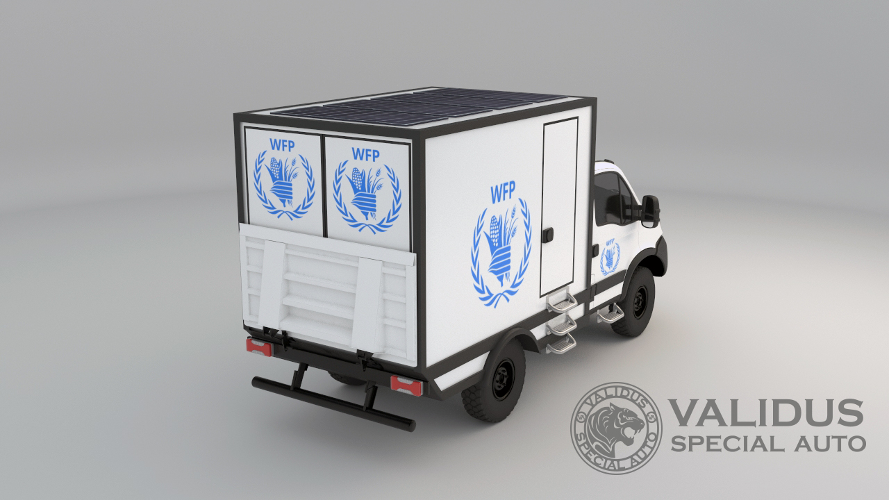 Medium-sized vehicle for transportation and targeted delivery of vaccines to remote settlements.
