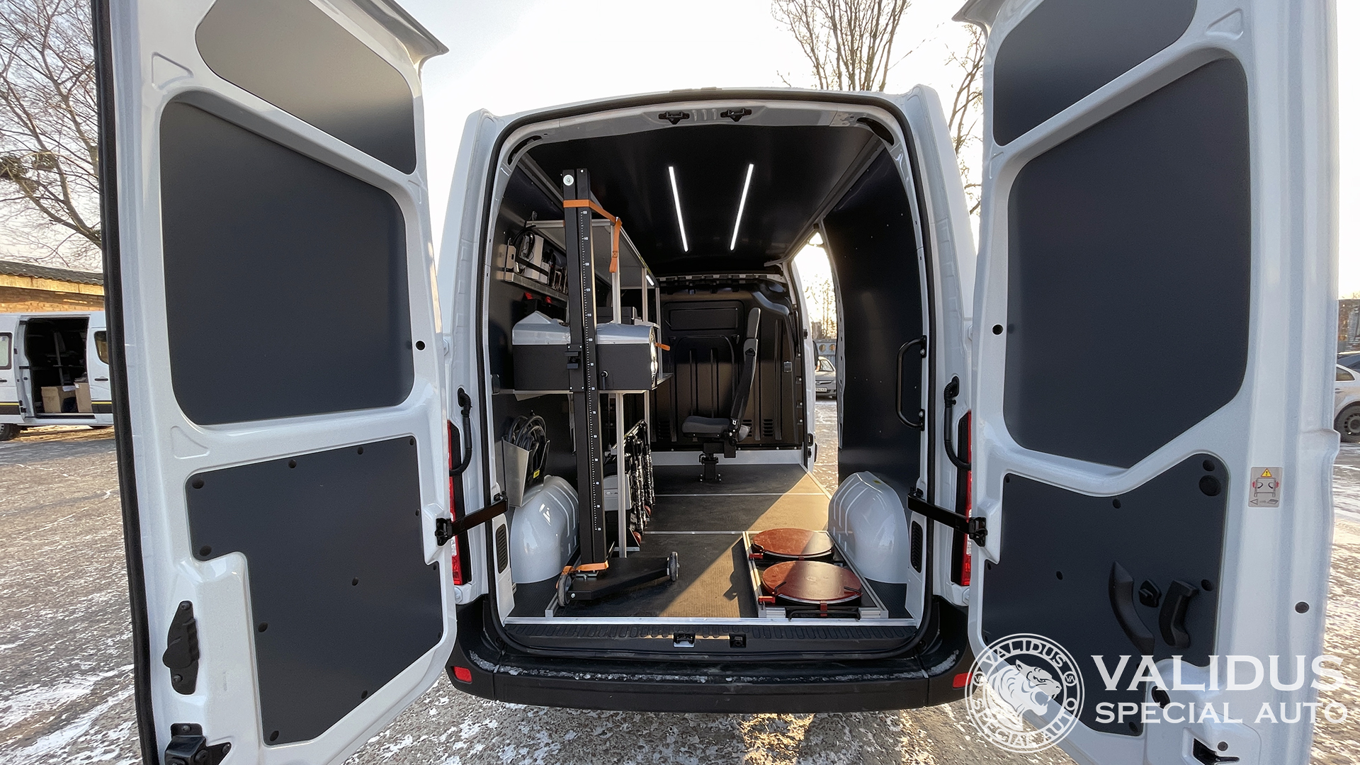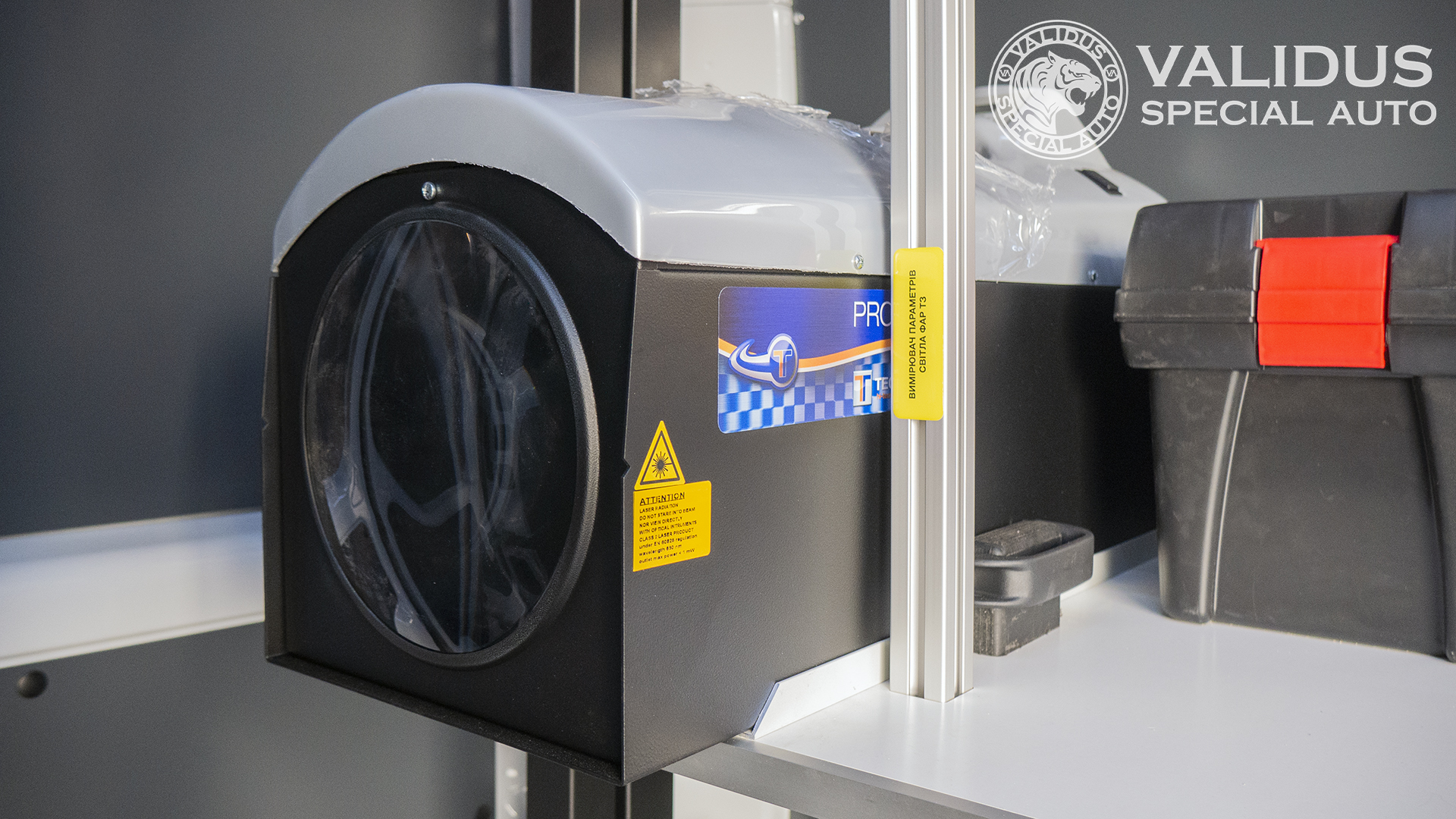 The specialized vehicle for checking technical condition of vehicles is designed for police control of the conformity of the technical condition of vehicles used on the roads.