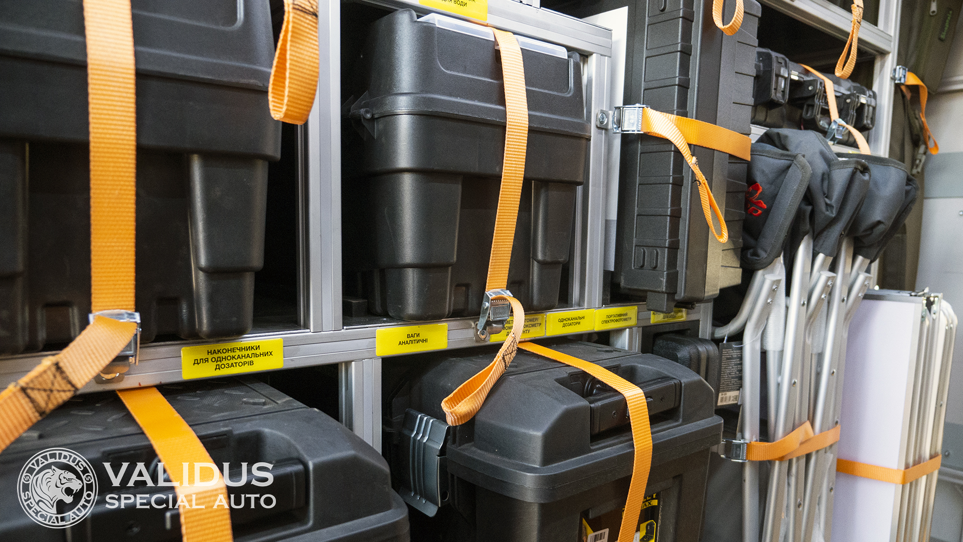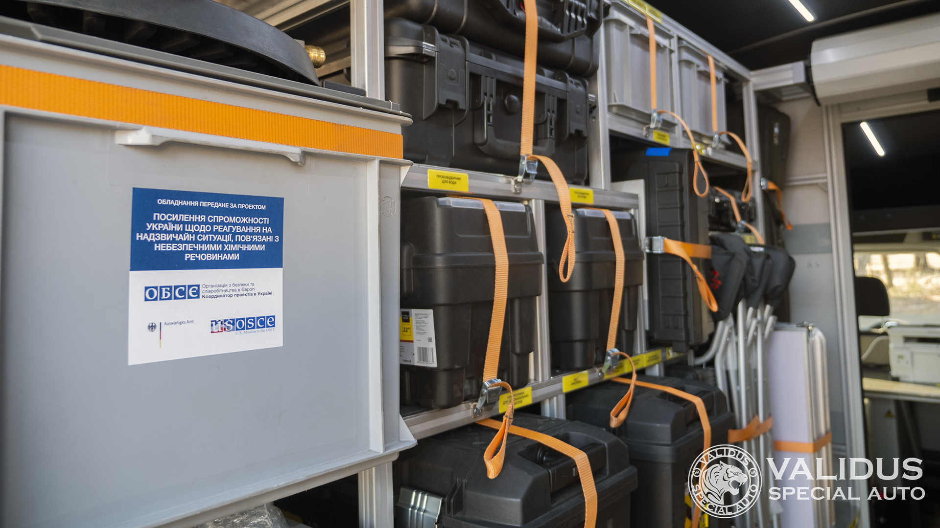 The laboratory is equipped with modern instruments for operational analysis of the situation, radiation and chemical reconnaissance, means for sampling and identification of unknown substances. It is also equipped with personal protective equipment for the crew members.
