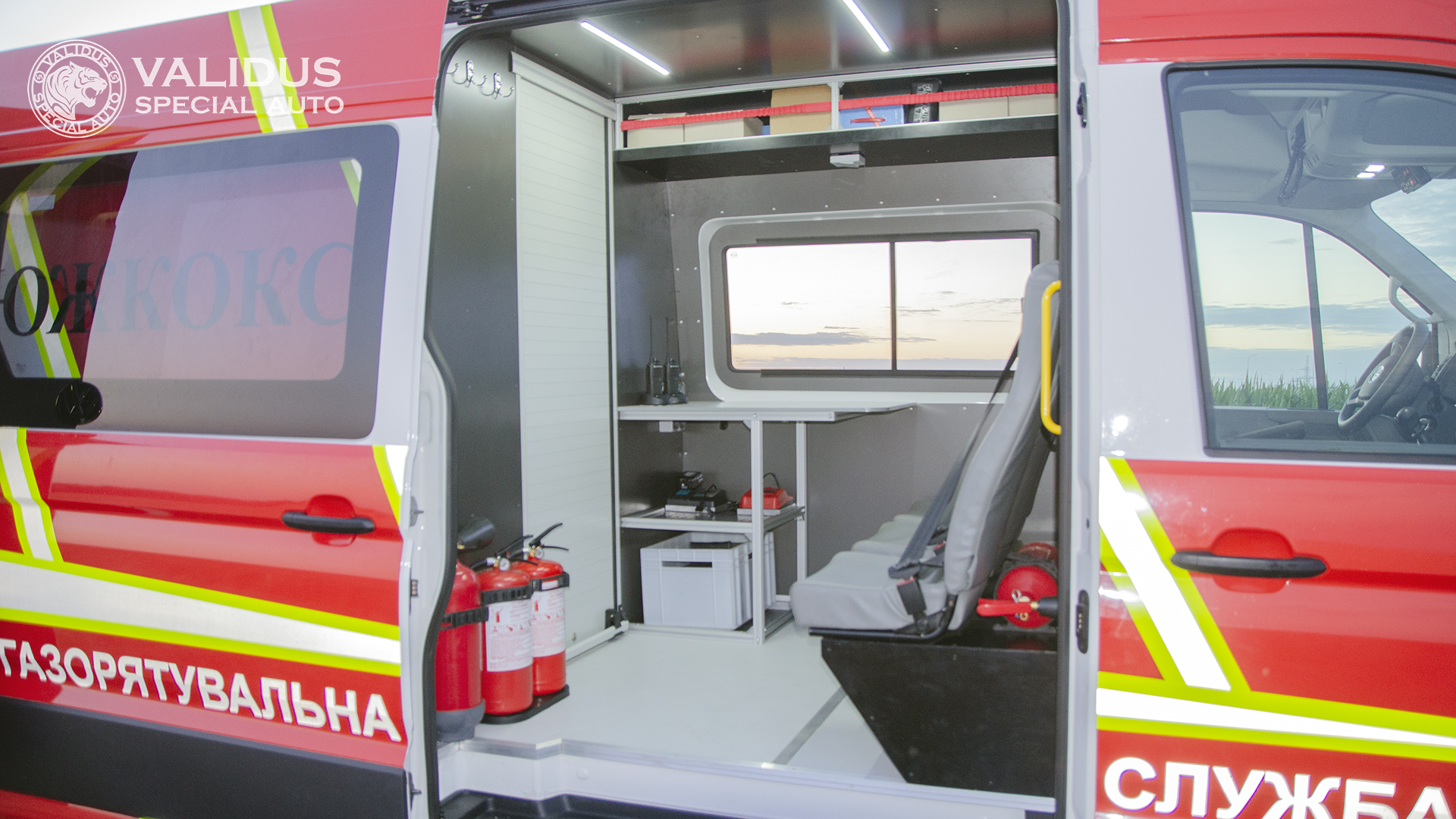 A specially equipped vehicle designed for the prompt arrival of rescuers to the place of an emergency, transporting special gear and equipment, supporting rescue operations associated with the use of personal protective equipment for the respiratory organs and skin (including compressed air devices).