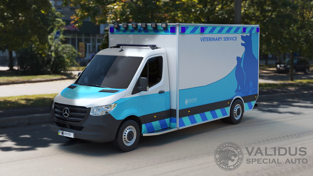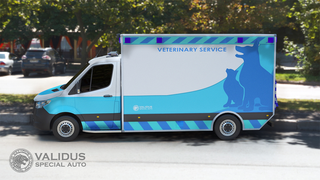 A specialized veterinary vehicle for on-site biosterilization of stray animals.