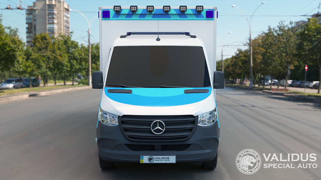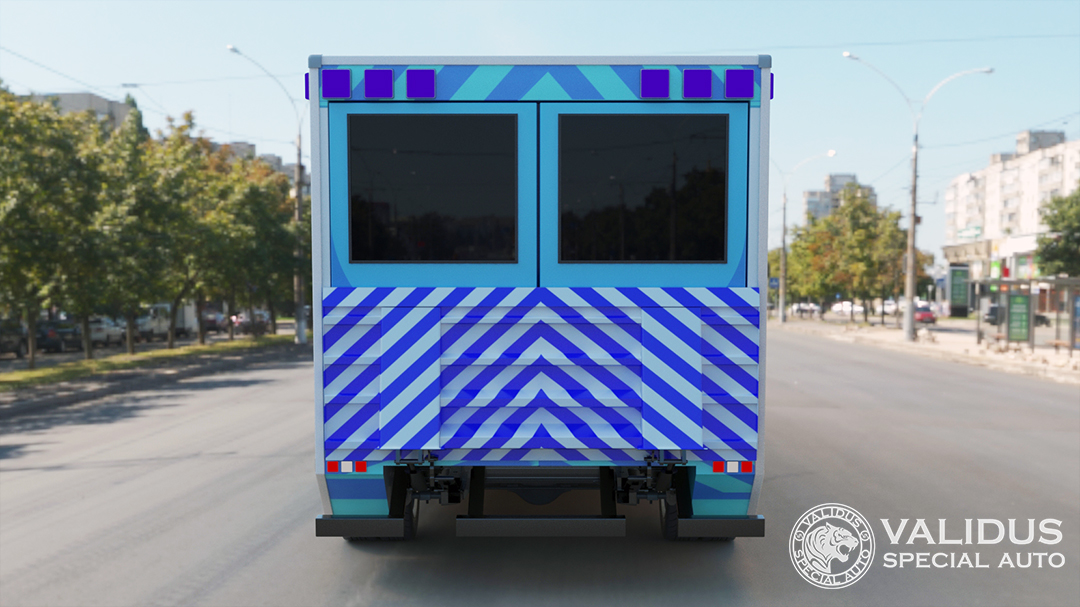 The panels and the roof of the van are made of 50mm-thick sandwich panels. The outer covering of the panels is plastic, 2 mm thick. The inner covering of the panels is also plastic, 1-1.5 mm thick. Insulator – extruded foam polystyrene, type PPSB-S-35, 40 mm thick. The panels are connected to the frame elements using special structures and adhesives. All external seams of the body are treated with a special sealant. All outer corners are edged with aluminum corners. Additionally, all hidden cavities at the bottom of the body are treated with protective mastics and pastes. Door fittings of the body (hinges, doors, locks and latches) are industrially manufactured from stainless steel. The equipment is conveniently placed on the shelves, has its own place and can be easily accessed. Tables, cabinets, work surfaces fixed on the walls and floor for carrying out work and placing the necessary equipment are made of stainless steel. All cabinets with doors, shelves with doors and drawers are equipped with latches (locks) protecting from spontaneous opening, both in the moving and in the static position of the vehicle. All sharp objects, as well as stationary installed equipment, have technological protection while the vehicle is moving. The operating table is conveniently located for conduction surgeries. Stationary equipment, equipment and locks for doors, dampers are protected from accidental opening. The positioning and attachment points of the equipment provide reliable fixation for convenience and safety during removal and installation. Hot and cold water supply system with sink, fresh cold water tank and waste water tank are also included. Hot water supply is provided by a boiler with a 15-liter water tank.
