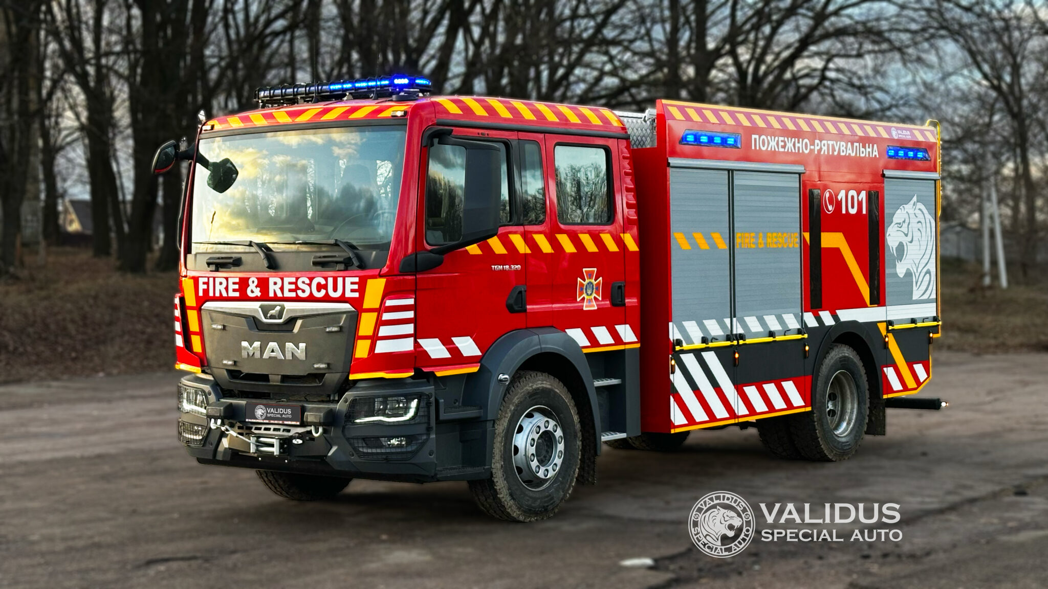 Fire Tank Truck based on MAN is a specialized fire and rescue vehicle with enhanced off-road capability, designed for extinguishing fires and carrying out rescue operations in various conditions, including hard-to-reach areas. The truck is equipped with a water and foam tank, a powerful pump, and modern firefighting and rescue equipment. Production can be based on European chassis models with a total weight from 8 to 33 tons, such as Tatra Terra, MAN TGM, Mercedes UNIMOG, and Renault Trucks.