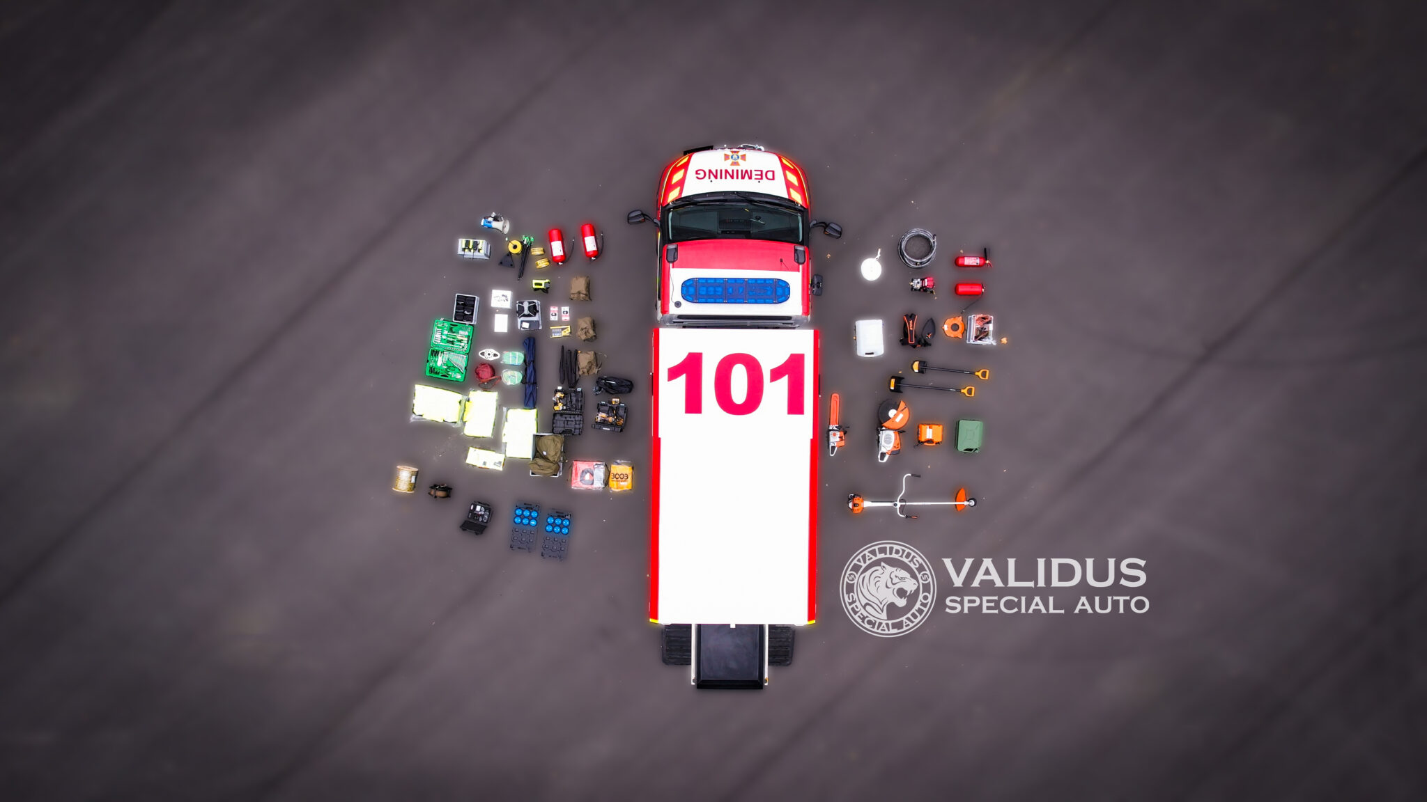 The vehicle is used for: prompt and mobile delivery of special equipment and supplies to the places of explosive ordnance detection by roads of all categories with maximum speed; radio communication, illumination of the places of explosive ordnance detection using searchlights; transportation of small-calibre explosive ordnances.