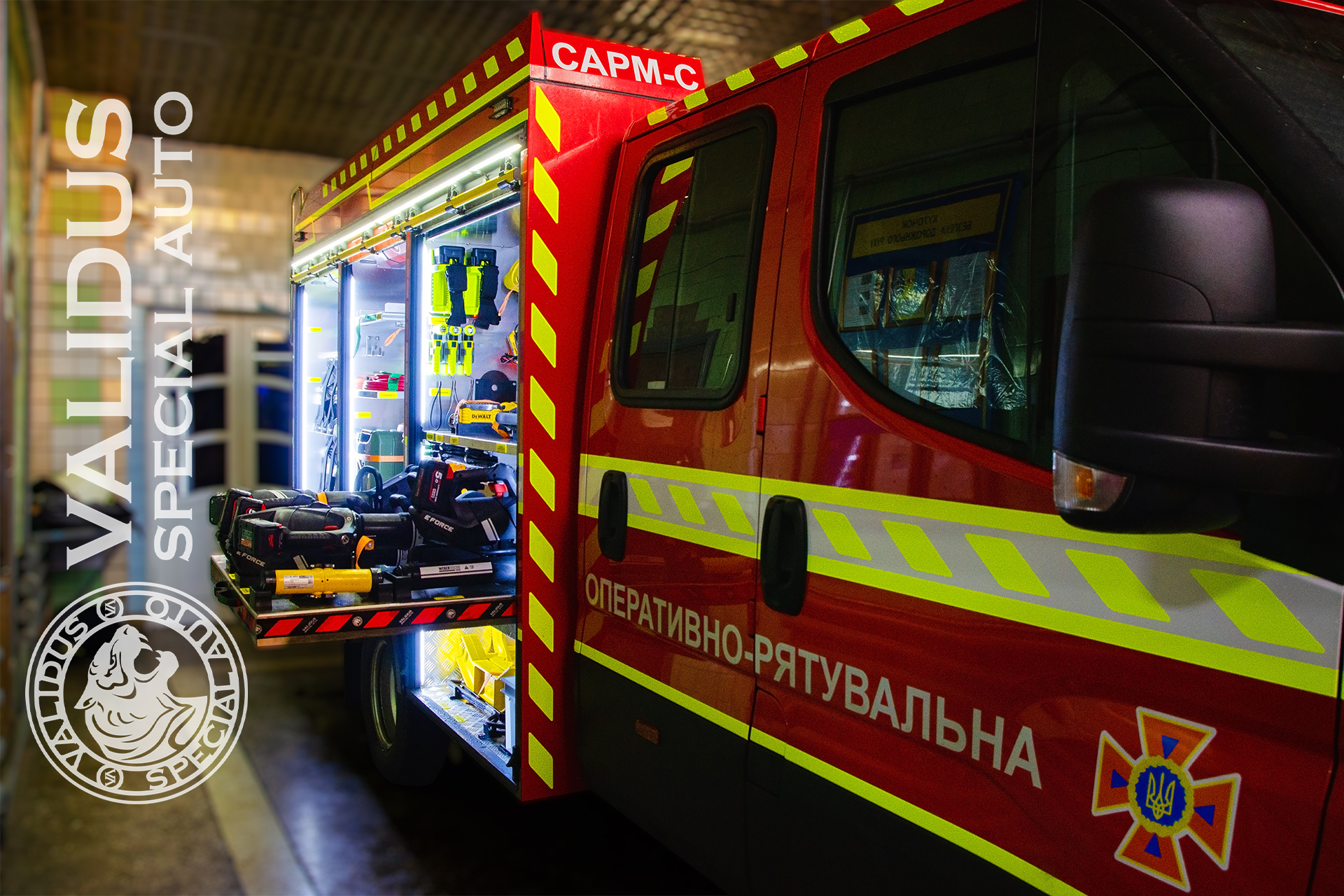 SARM-S is equipped with modern, high-quality emergency rescue equipment, properly secured to allow it not to interfere during vehicle movement, even on poor road surfaces.