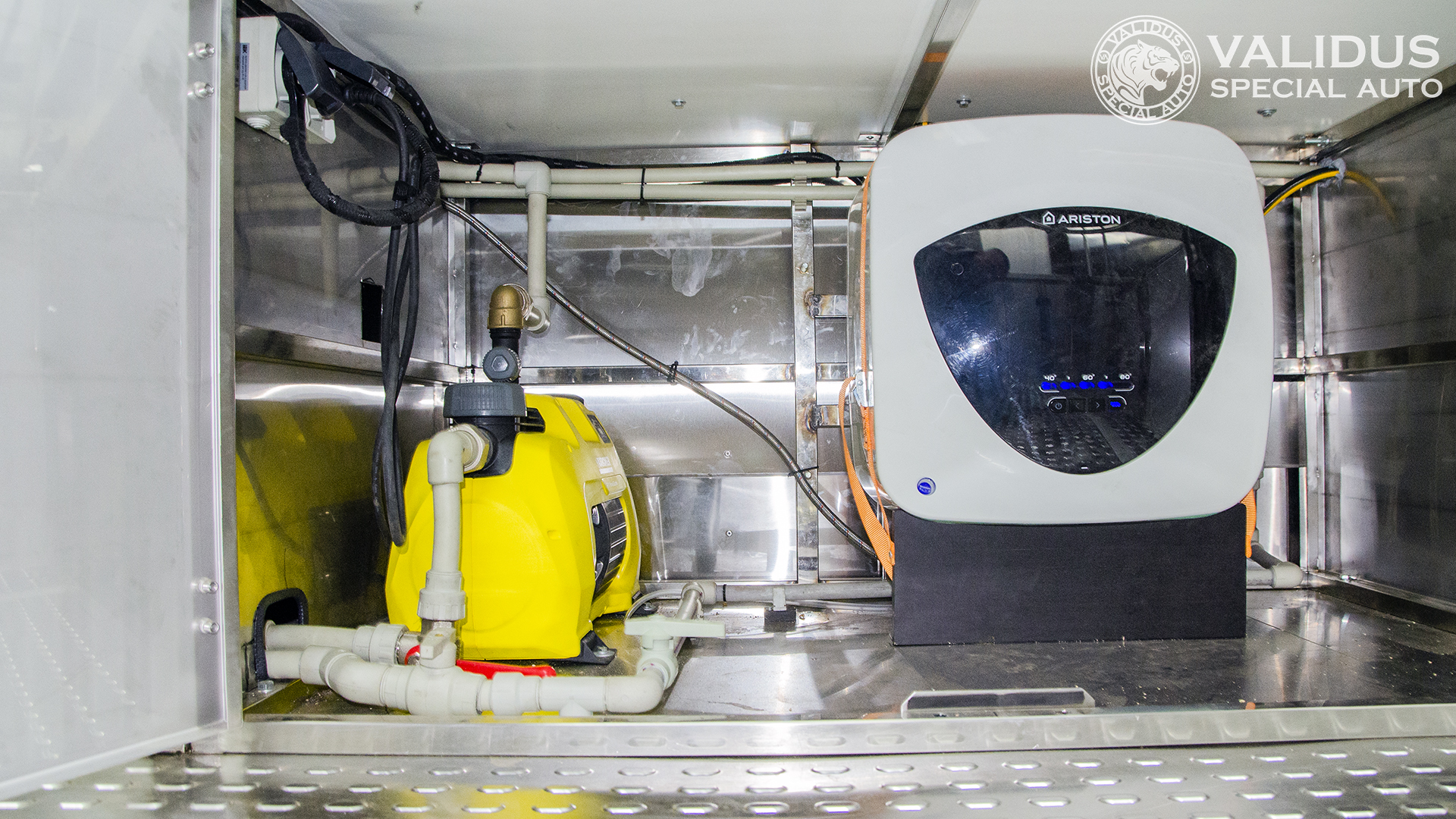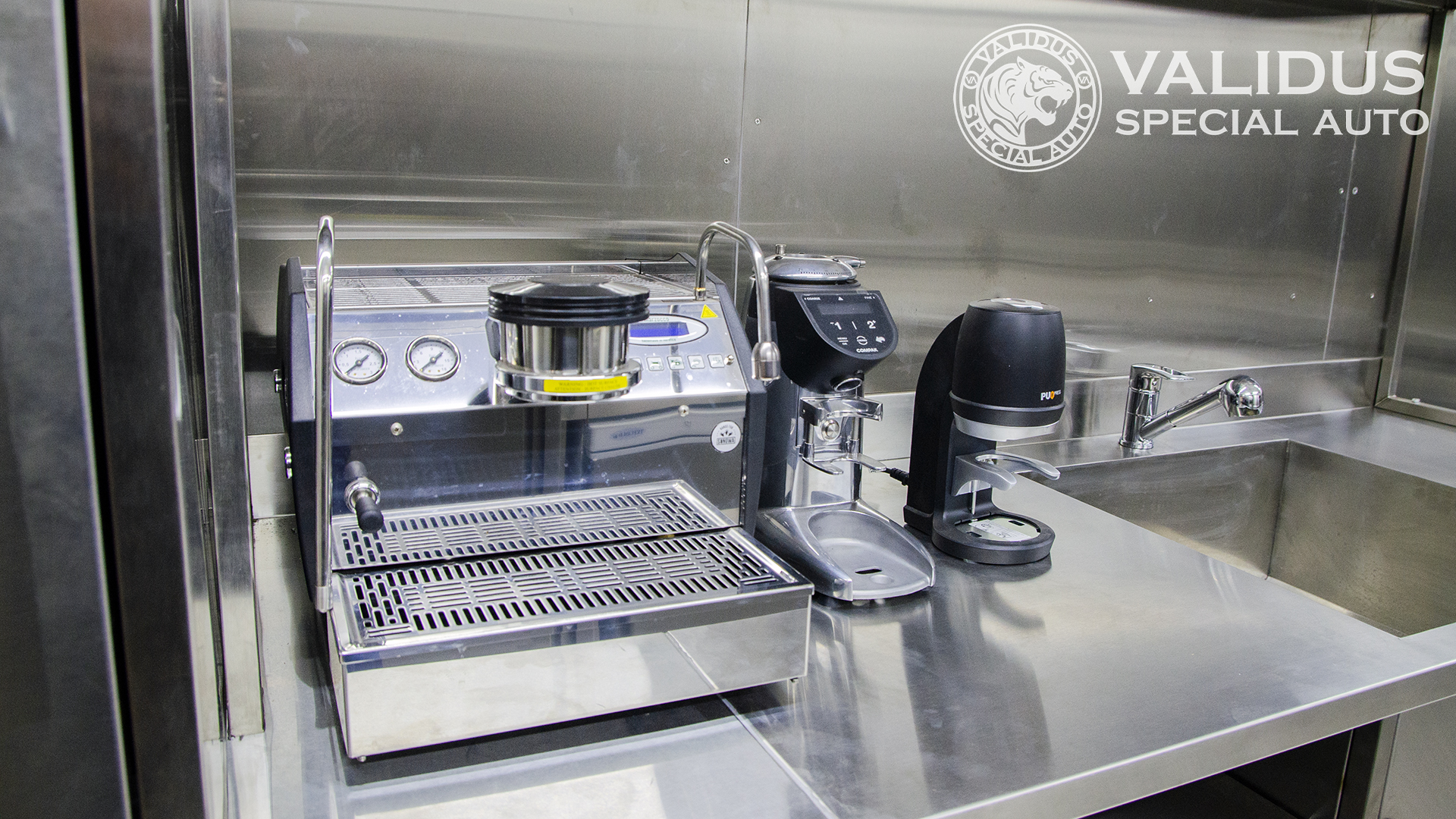 Комплектация мобильной кухни подбирается индивидуально по запросу заказчика и в зависимости от выбранного шасси.
